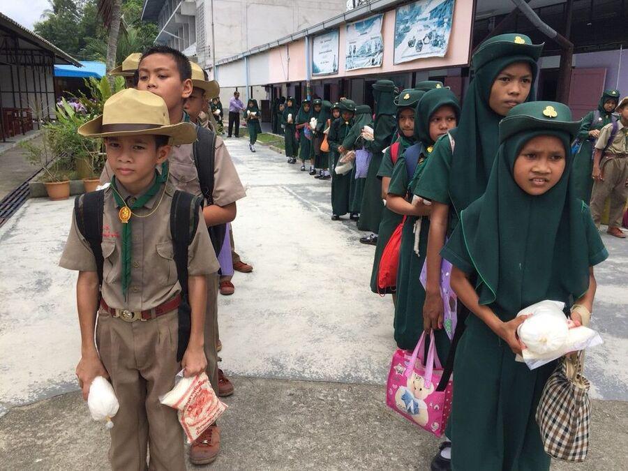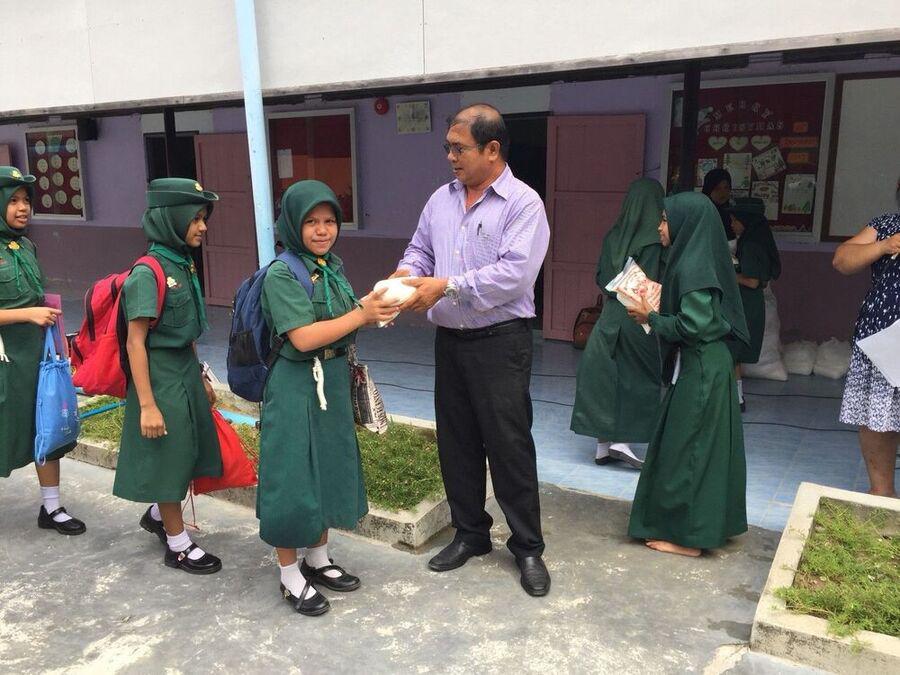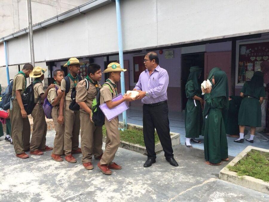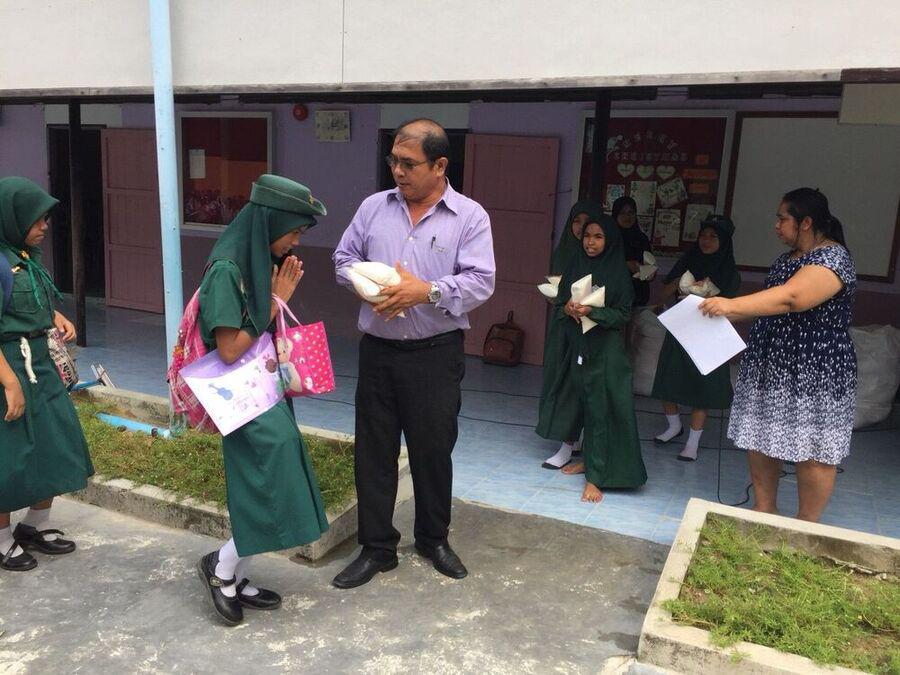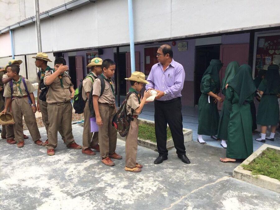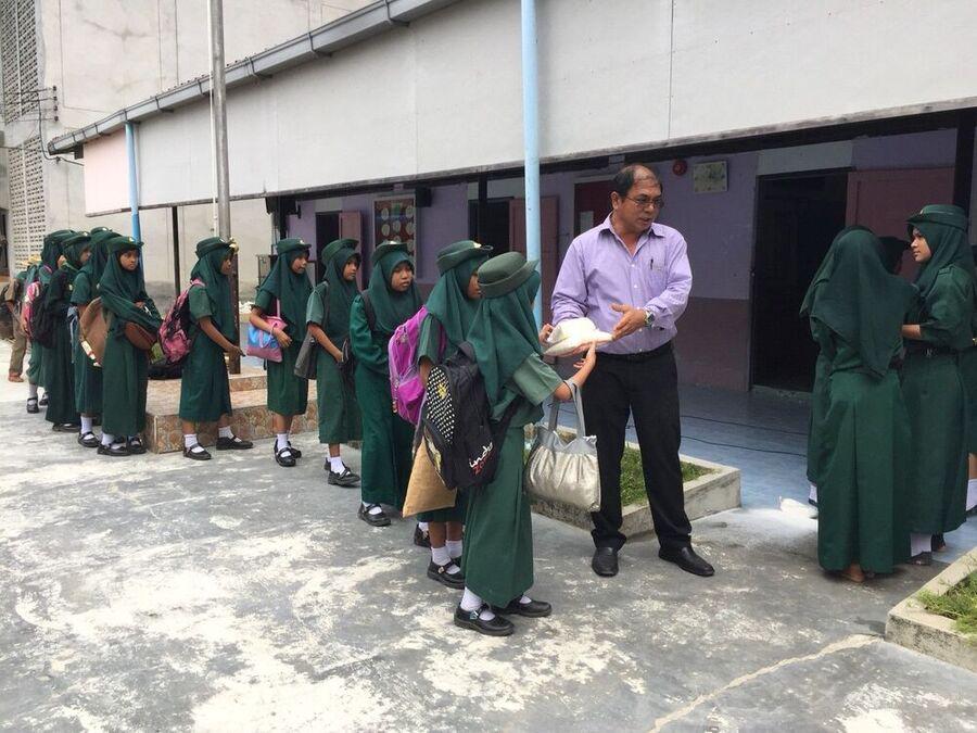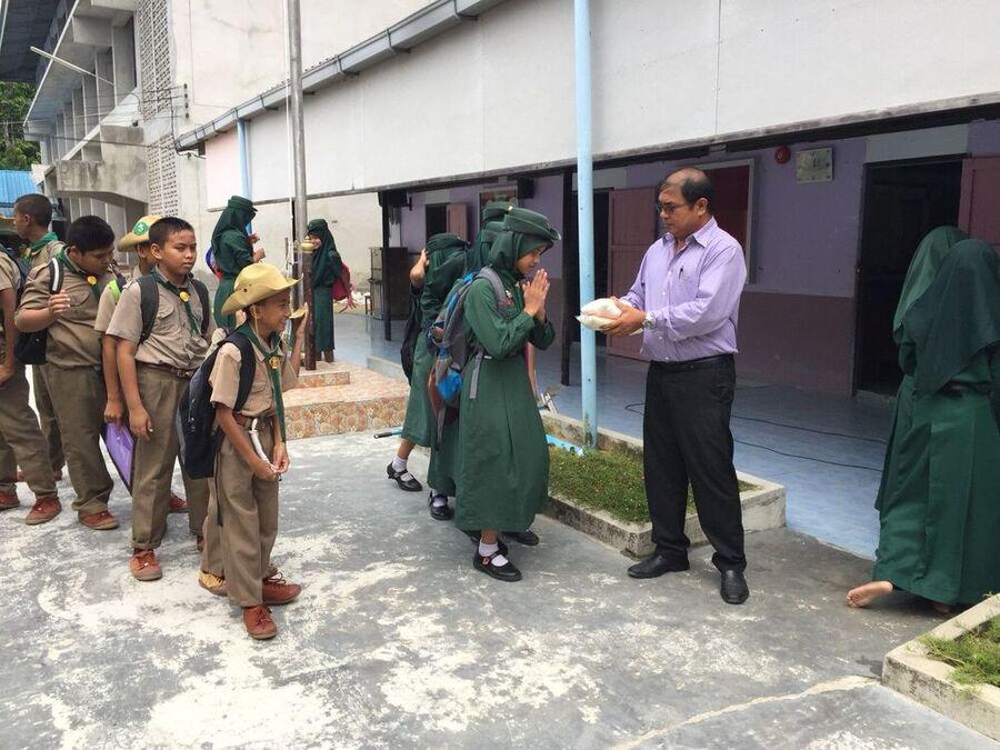 ผู้อำนวยการโรงเรียนอิสลามบำรุง แจกข้าวเหนียวและน้ำตาลแก่นักเรียนที่ถือศีลอดในช่วงเดือนรอมฎอน